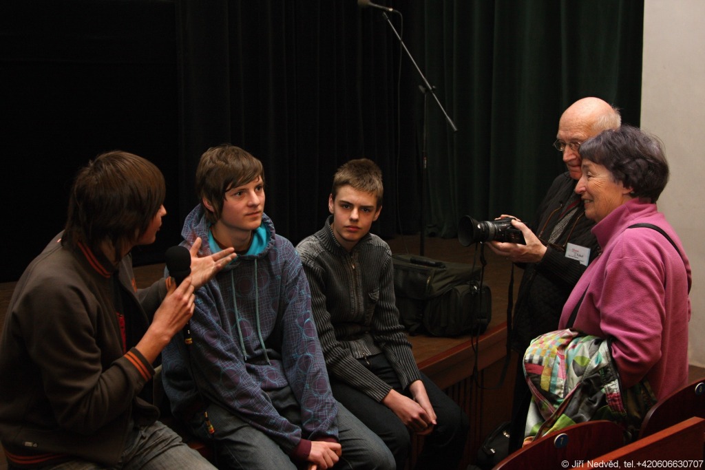 Diskuse se zúčastnila reprezentace tvůrčího týmu Základní školy gen. Františka Peřiny, Praha 6-Řepy, která se podílela na scénáři a natočení dokumentu „Generál gentleman Tomáš Sedláček“ a klíčový umělecký štáb, který stojí za mimořádným dokumentem „Vůle žít“. Jednalo se o vítězný snímek v kategorii videodokument. Tvůrci jsou žáci základní umělecké školy v Polici nad Metují pod vedením pana učitele Vladimíra Berana. Projekce a následné besedy se zúčastnila jedna z hlavních protagonistek filmu, akademická malířka Helga Hošková, která své vlastní zkušenosti z Terezína promítá celý život do sugestivních výtvarných děl. Sympatickou moderátorkou byla herečka Debora Štolbová.